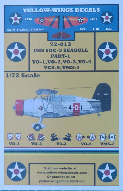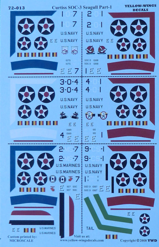 Für den einzigen Bausatz der Curtiss SOC Seagull im Maßstab 1/72 hat Yellow-Wings einen Decalsatz im Angebot.