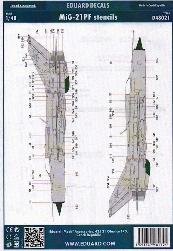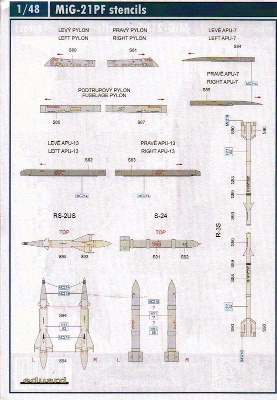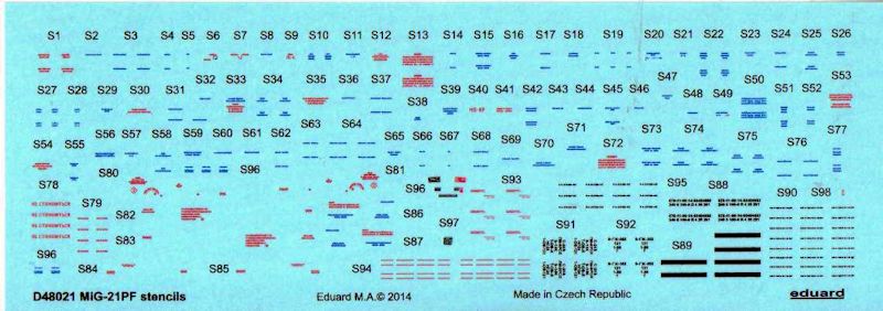 Der Decalbogen enthält rote und blaue Wartungshinweise sowie die Waffenbeschriftung. Er ist für die Aufwertung der Weekend Edition oder für Bausätze anderer Hersteller empfehlenswert, da der Profipack diese schon enthält.