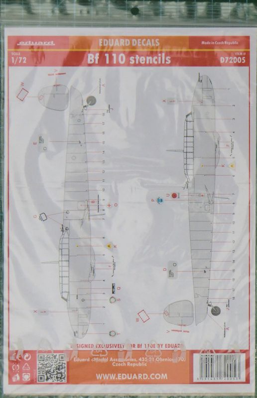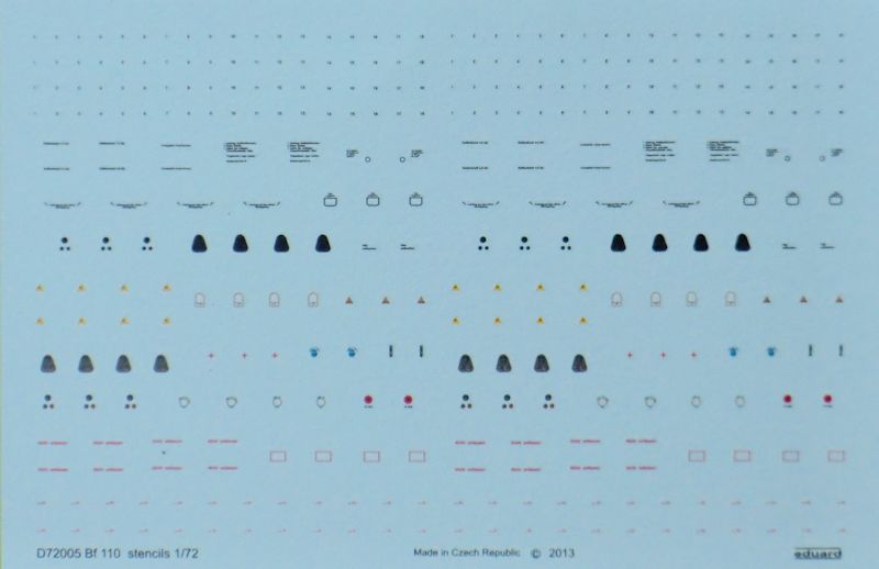 Für die verschiedenen Bausätze der Messerschmitt Bf 110 in 1/72 hat eduard selbst einen Decalsatz mit Wartungshinweisen herausgebracht.