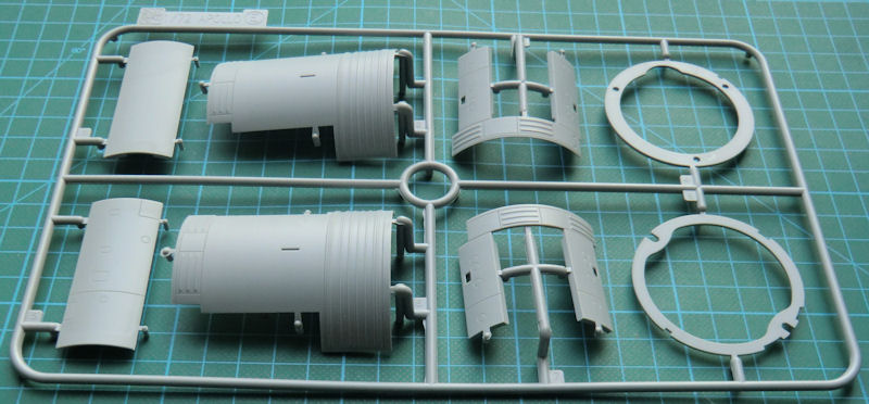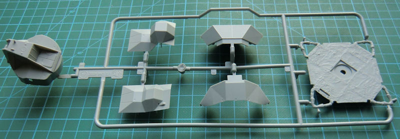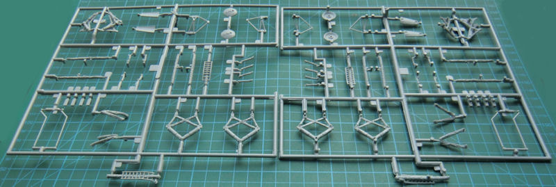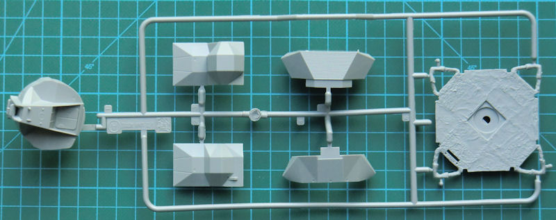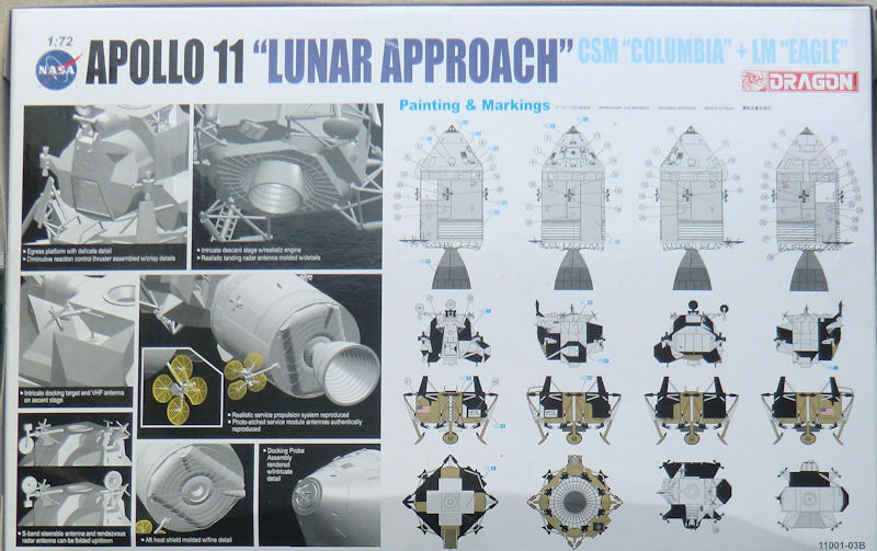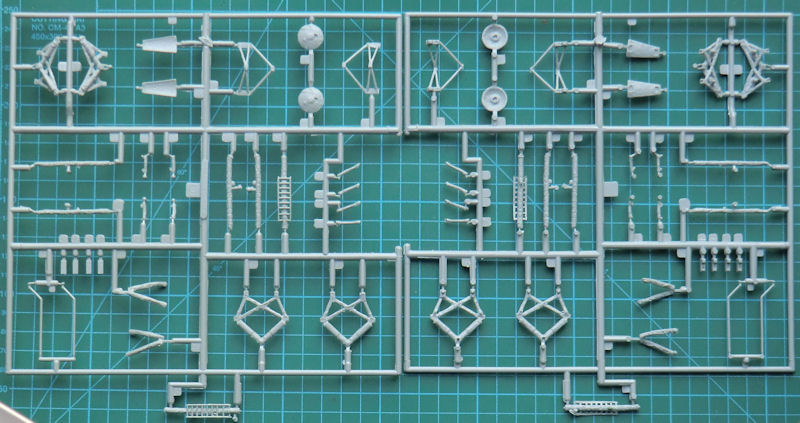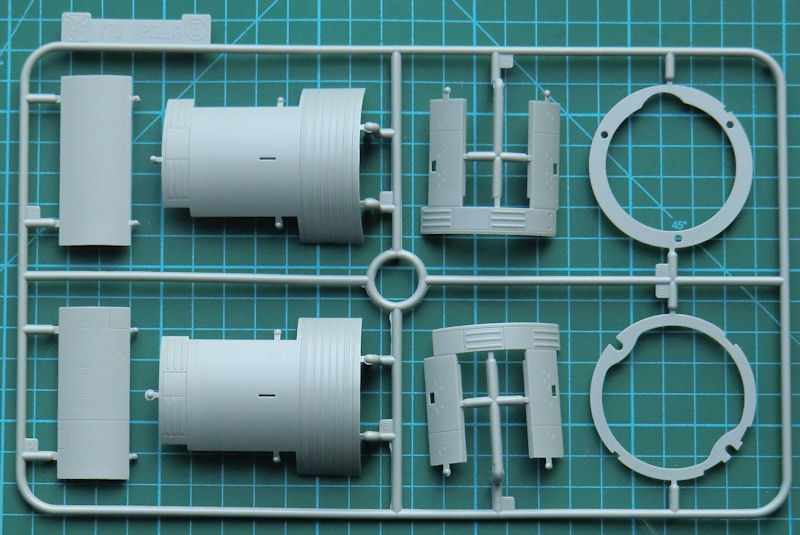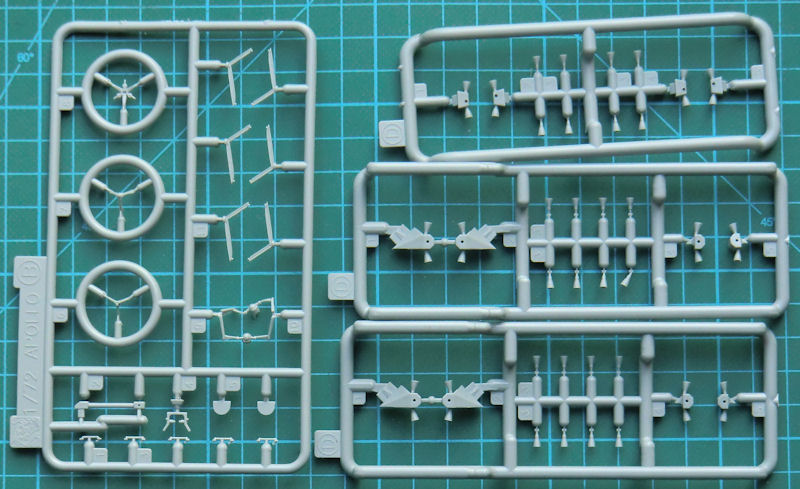 Bausatz: Ursprünglich war dieser Bausatz von Apollo 11 bei Dragon als Fertigmodell angekündigt. Zum Glück hat man in China auch erkannt, dass es auch einen Markt für einen Bausatz gibt. In einem attraktiven praktischen Stülpkarton befinden sich gut verpackt zehn unterschiedliche Spritzgussrahmen/-teile mit insgesamt 103 Teilen, vier Fotoätzteilen, einem Decalbogen und die übersichtliche Bauanleitung. Ein paar Teile wandern in die Restekiste.