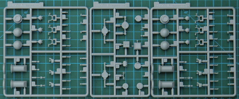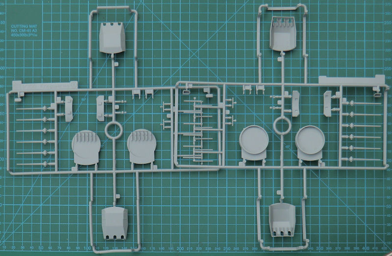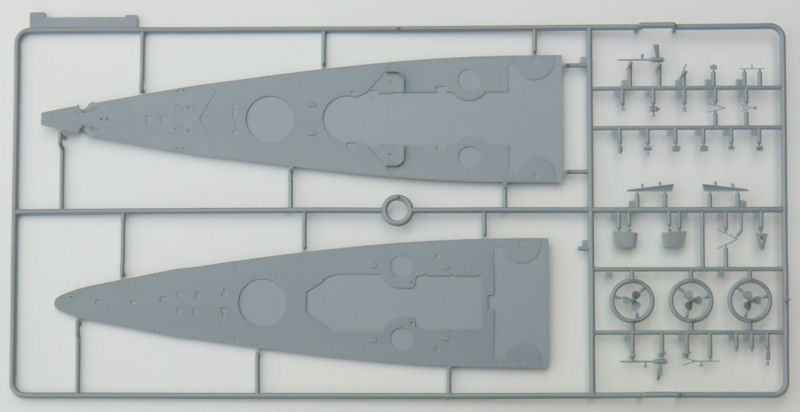 Der Rumpf ist in der Wasserlinie getrennt. Innen gibt es ein paar Stützen zur Stabilisierung. Die meisten fertigen Modelle dürften sicherlich einen Vollrumpf bekommen. Bei den schweren und mittleren Geschützen hat Dragon optional die typischen Schutzverkleidungen optional vorgesehen. Natürlich sind die Mündungen der Rohre hohl.