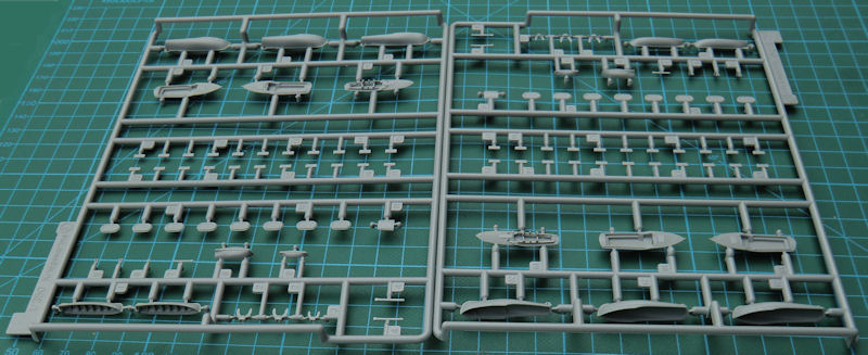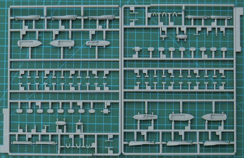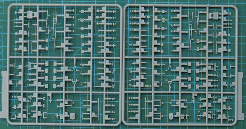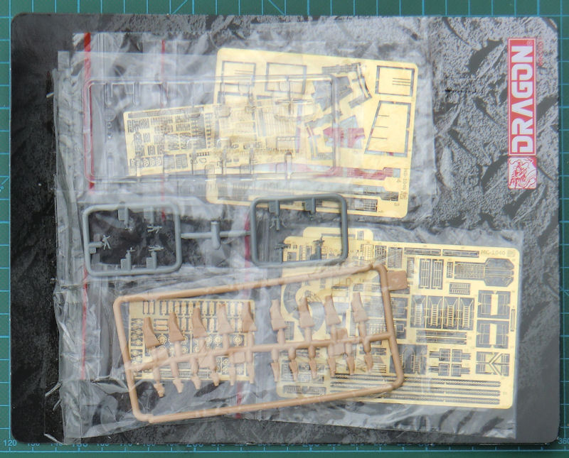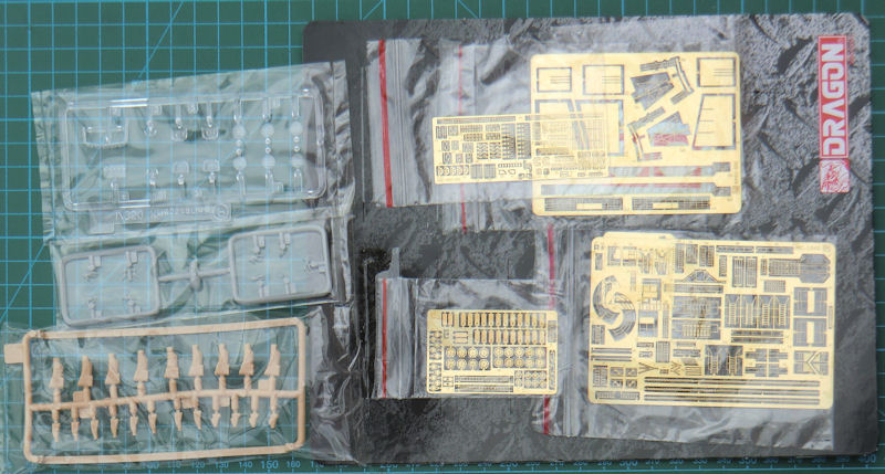 Im stabilen praktischen und sehr attraktiven Stülpkarton befinden sich nicht weniger als 32 Spritzgussrahmen bzw. Großbauteile. Dazu kommen fünf Bögen mit Fotoätzteilen. Insgesamt sind es mehr als 1300 Bauteile die man hier verbauen möchte. Man erkennt sofort am Formenbau mit Slidemold-Technologie, dass Dragon seit zwei Jahrzehnten am Markt tätig ist. Ein paar überzählige Bauteile für die Restkiste sind auch vorhanden.
