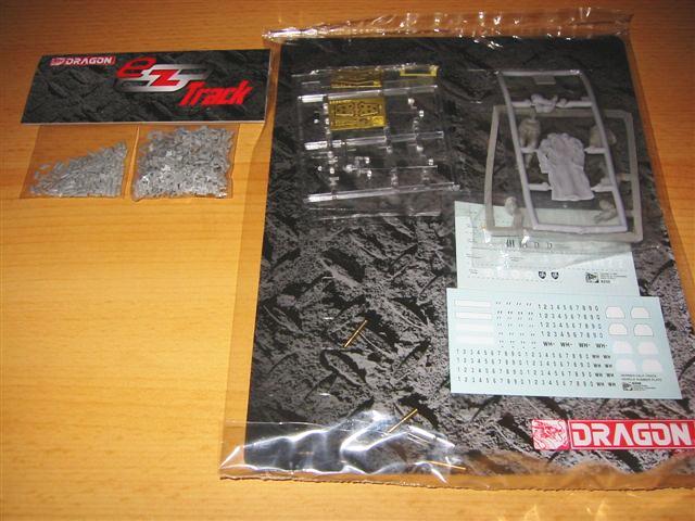 Die beigefügten Bonusteile enthalten: Eine schon in Einzelteilen beigelegte späte Antriebskette, 3 umfangreiche Decalbögen von Cartograf, eine extra Fahrerfigur, Fotoätzteile für das MG-Schild und die Rücksitzpanzerung, neue Klarsichteile für die Sichtluken, gedrehte Messing Munition, ein gedrehtes Aluminium Geschützrohr und aus besonders weichen Vinylmaterial einen Mantel und ein Paar Stiefel.