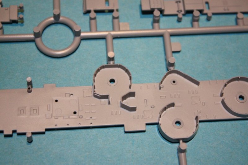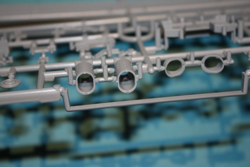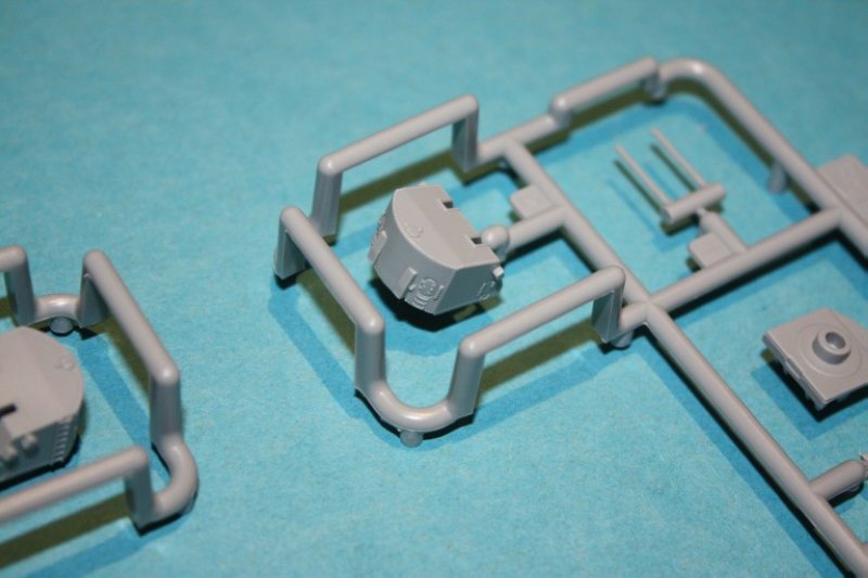 Eine weiteres Highlight sind die einteiligen Schornsteine, welche wie die Kappen hohl sind. Mit Hilfe von geätzten Gitter und zahlreichen Details wie Dampfrohren etc. erreichen sie aus dem Kasten gebaut eine neue Dimension. An dieser Stelle sei allerdings auch mal erwähnt, das diese Feinheit aber auch einen Nachteil hat. Das Herauslösen der Teile aus den Spritzrahmen erfordert besondere Vorsicht, damit die Bauteile nicht im Maul des Teppichmonsters verschwinden bzw. zerbrechen. Hier habe ich bisher gute Erfahrungen mit dem Einsatz einer fotogeätzten Säge gemacht.