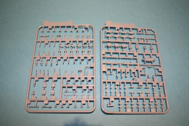 Auch hier erreicht die Detaillierung einen von mir vorher bei einen Spritzgussbausatz noch nicht gesehenen Grad. Die Drehplattform, die Lafettierung und die Rohre sind alles separate Bauteile. Ergänzt wird solch ein Geschütz dann durch Ätzteile für die Sitze, die Richtfadenkreuze und den Richtantrieb. Ähnlich sieht es aus bei den 20mm Oerlikons, alternativ kann man hier zwischen Schutzschildern aus Plastik oder Metall wählen. Hier wird die zum Ende des Krieges eingeführte Variante der Doppellafettierung verbaut. In das schon Gesagte hinsichtlich der Qualität und Aufmachung fallen auch die Torpedorohre, sämtliche Leitgeräte wie MK51, MK37 mit Radar MK22/12 und auch die Wasserbombenablauf- und wurfgestelle. Die Linsen für die Scheinwerfer sind in Klarglas beigelegt. Als kleine Beigabe sind sechs Figuren vorhanden.