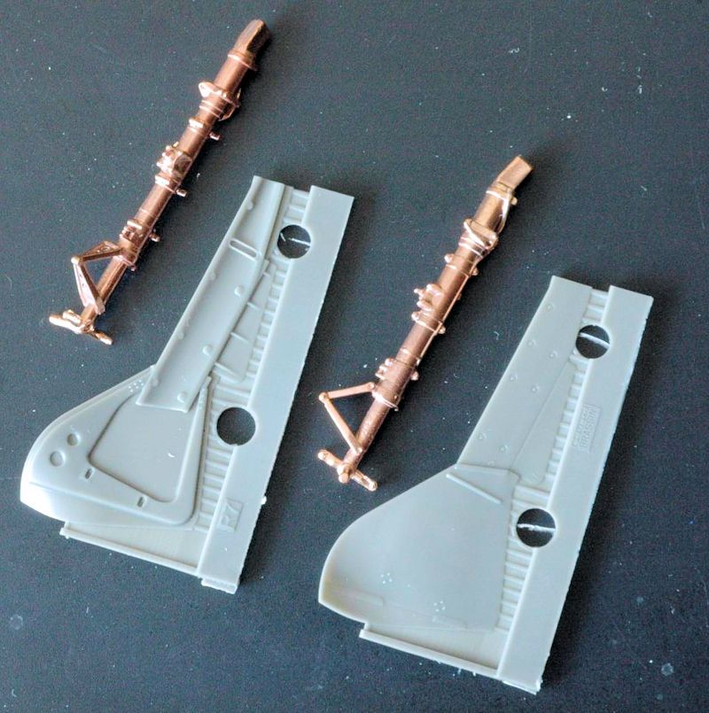 Zeitgleich mit der Revell 1/32 FW 190 F-8 erschienen bei Eduard dieser Zubehörsatz für das Fahrwerk. Wahrscheinlich hat Revell wegen seiner Kooperation mit Eduard dem tschechischen Hersteller vorab Spritzlinge überlassen, um eine Adaption an das Modell zu gewährleisten. Der von Eduard verwendete Werkstoff lässt eine präzisere Reproduktion als beim Spritzgussverfahren zu, zumal der Formenbau in China nur relativ begrenzte Möglichkeiten hat. Die Fahrwerksbeine sind aus Metall, was bei diesem nicht allzuschweren Bausatz aber nicht zwingend erforderlich ist.