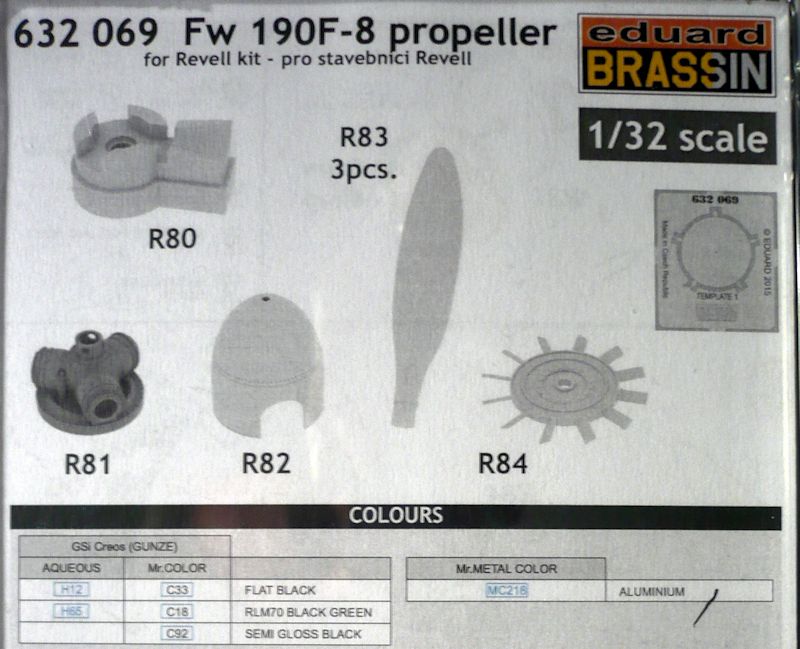 Für die FW 190 F-8 von Revell bietet Eduard einen weiteren Verfeinerungssatz bestehend aus Resinteilen und einer Ätzteilplatine an.
