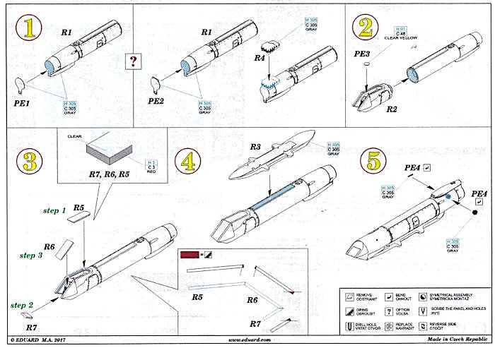 Anleitung: Eine fünfstufige Bauanleitung liegt ebenso wie Abziehbilder bei. Farbangaben findet man auf der Rückseite. Da der Zusammenbau hier keine große Hürde ist kann auch sich der Modellbauanfänger an diesem Zubehör versuchen.