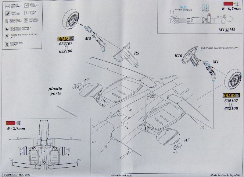 Der Satz besteht aus den Fahrwerksklappen und den Fahrwerksbeinen aus stabilem Bronzematerial. Alles ist sauber und fein gefertigt. Die Klappen sind dem Maßstab entsprechend dünn ausgeführt. Beiliegend ist ein Faltblatt, für die korrekte Ausrichtung des Fahrwerkes.
