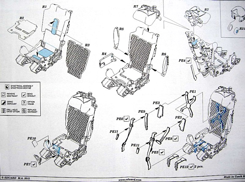 Ist der Bausatzsitz schon gut detailliert überbietet ihn der Resinsitz um Längen. Allein der Korpus ist schon eine Augenweide (s.o.). Vervollständigt wird das ganze durch die entsprechenden Ätzteile. Mit diesem KM-1 haben auch alle Modelle von anderen Herstellern ausgedient. Als kleines Schmankerl hat Eduard noch einen Pilotenhelm Zscha-5 dazugelegt.
