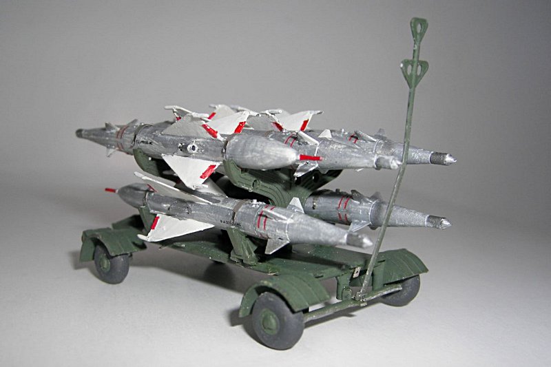 Eduard bietet mit diesem Bausatz einen mit fünf Luft-Luft-Raketen bestückten Transportwagen. Mit diesem können Dioramenfreund das Umfeld verschiedener MiG-Jagdflugzeuge beleben, gehörte doch dieser Wagen seit Ende der 1950er Jahre zum Bild eines Flugplatzes des Warschauer Vertrages.