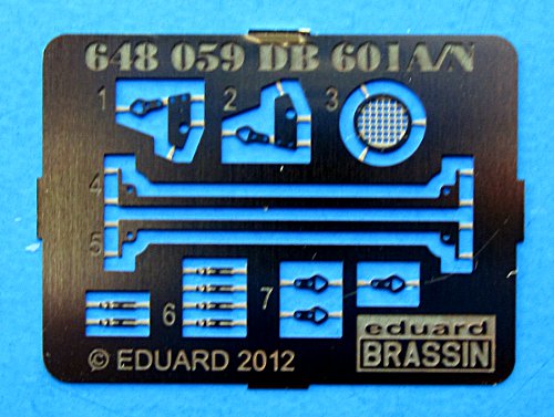 Der Satz beinhaltet einen DB601A bzw. N mit Anbauteilen, Auspuffstutzen und Motorhalterung. Außerdem gibt es eine schön detaillierte Motorhaube. Da der Motor in diesem Satz auch auf der Unterseite detailliert ist, wäre ein offener Ölkühler eine nette Option gewesen. Dies erforderte dann aber einen chirurgischen Eingriff am Grundbausatz und wurde vielleicht deshalb verworfen.