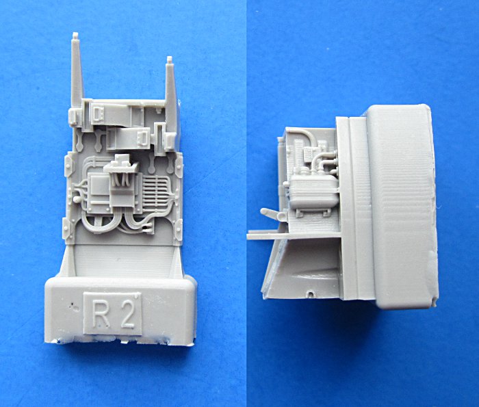 Neben dem Motor liefert Eduard diesen Monat auch die Installation der Rumpfwaffen als Resin-Zubehörsatz. Die beiden MG's habe ich kürzlich vorgestellt. Die Verstopfung der Mündung finde ich noch immer bescheiden. Das zentrische Aufbohren ist beim Kaliber 7,62mm in 1/48 wirklich schwierig. Dafür sind die anderen Teile einfach toll gemacht. Allein das einteilige Brandschott ist super gemacht. Das I-Tüpfelchen wäre sicher ein Aufbau mit ausgebauten Munitionskästen gewesen, aber immerhin liegen zwei dieser Kisten auch separat als Bonus bei.