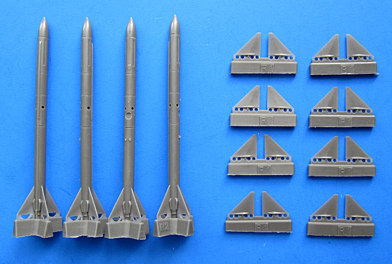 Bausatz: WIe schon bei der AIM-7E liefert Edurd hier ein tolles Produkt. Der Raketenkörper ist super gegossen und weist feine Details auf. Der Anguss beschränkt sich auf den „Boden“ der Rakete. Hier verdeckt später ein Fotoätzteil die Schnittstelle. Die Steuerflächen sind ausgesprochen dünn aber trotzdem „bruchsicher“. Der Ätzteilbogen weist diesmal auch bedruckte Schilder für die Raketen auf. Insgesamt ist die Anwendung einfach und sicher von jedem Modellbauer zu bewältigen. Hinweise zur Farbgebung gibt es nicht, ebenso fehlen jegliche Markierungen. Dafür gibt es aber von einigen Decalherstellern Sätze, z.B. von TwoBobs.