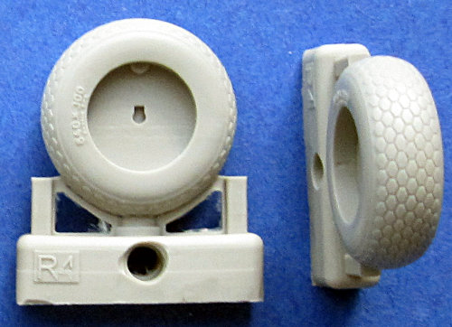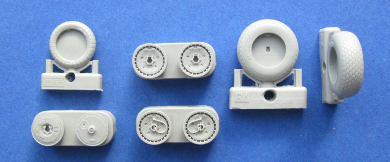 In dem Satz befinden sich Reifen und Felgen für das Haupt- und Bugfahrwerk einer Me 262. Diese sind gut gestaltet und stellen Hauptfahrwerksräder mit Linsenprofil und am Bugrad Querrillen dar. Die Details der Reifen und Felgen sind fein gestaltet. Auch die Reifenmaße und das Logo des Herstellers Contionental sind zu erkennen. Nachwievor setzt Eduard auf die Darstellung eines unbelasteten Reifen. Dies trübt den Effekt etwas und erfordert ein wenig Arbeit mit der Feile, sollte man dies - wie ich - nicht wünschen.