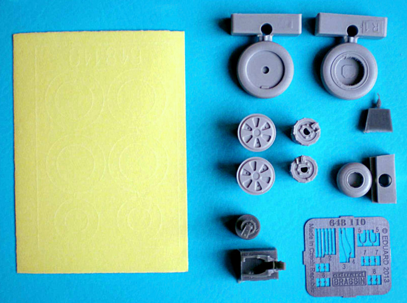 In der Brassin Reihe liefert Eduard einen Satz für die gerade erschienen MiG-21 PFM. Es ist der bereits bekannte Radersatz, der dem Typ entsprechend um eine Felgenvariante verringert wurde. Leider hat sich Eduard noch nicht durchgerungen die Räder im belastetem Zustand darzustellen, dies wäre eine echte Alternative zu den Bausatzteilen.