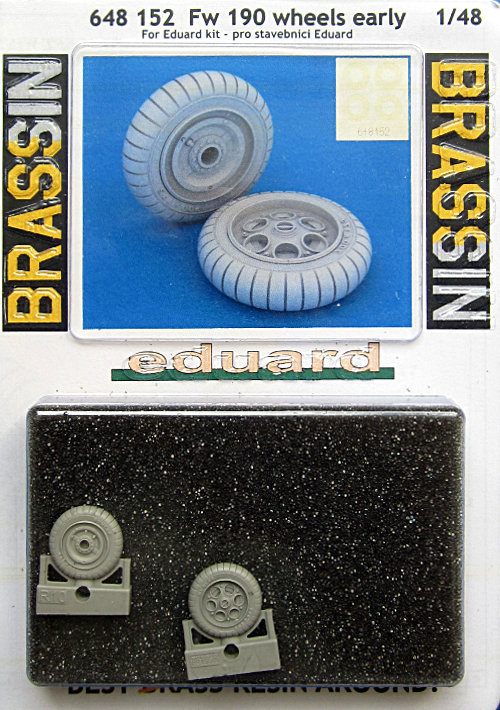 Für den Eigenen Bausatz der Fw 190 hat Eduard einen Satz frühe Räder mit "Lochfelgen" herausgebracht. Bereift sind diese mit 700x175 Dunlop Reifen. Der Grundbausatz ist einer von Eduards Dauerbrennern und bisher ihr meistverkauftes Produkt. Also lohnt es sich für Eduard für den schon etwas älteren Bausatz Zubehör herauszubringen, denn nicht jeder ver- bzw. gekaufte Bausatz ist bereits gebaut.... weiß ich aus eigener Erfahrung.