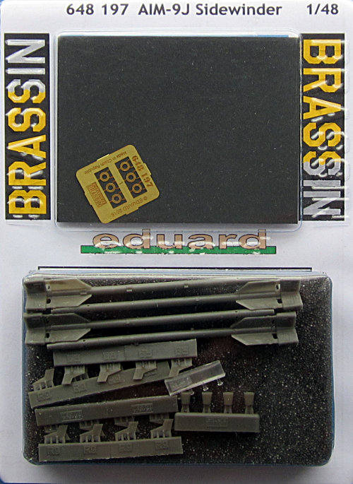 Bausatz: Eduard erweitert seine Resin-Linie "Brassin" stetig um weitere Zubehörsätze für eigene Modelle und jene anderer Hersteller. Nach verschiedenen AIM-9-Abarten folgt nun die J-Variante der Sidewinder. Dieser Satz enthält Teile für vier Raketen. Der Guss ist sehr gut und im Blister gab es trotz Enge keine Beschädigungen an den Teilen. Von den in klarem Resin gegossenen Suchköpfe liegen 4 Stück beiliegen. Wegen der Empfindlichkeit und Winzigkeit empfehle ich die Verwendung eines Weißleims oder z.B. Gators Glue.