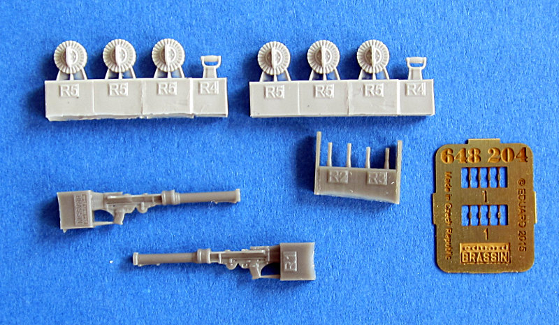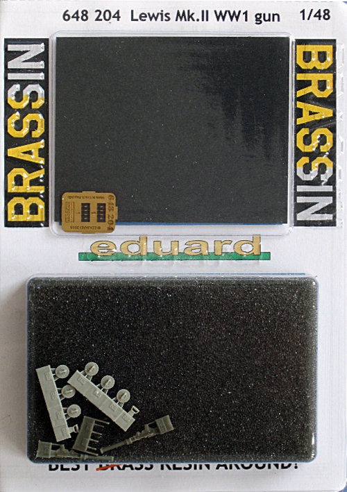 Bausatz: Eduard hat nun dieses kleinen Satz mit zwei Lewis Mk.II herausgebracht. Für diese beiden MG gibt es 6 Magazine, den Spatengriff und den Griff zum Durchladen. Der Lauf ist wiederum nicht hohl, kann aber leicht durch ein entsprechendes Röhrchen (z.B. von Albion Alloys oder Kanülen) ersetzt werden, da er ein separates Teil ist. Es gibt auch ein paar Hinweise zur Farbgebung, aber das ist eigentlich selbsterklärend.