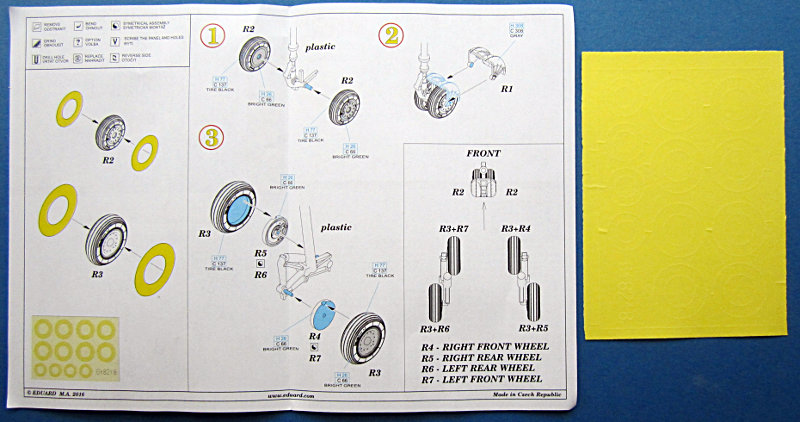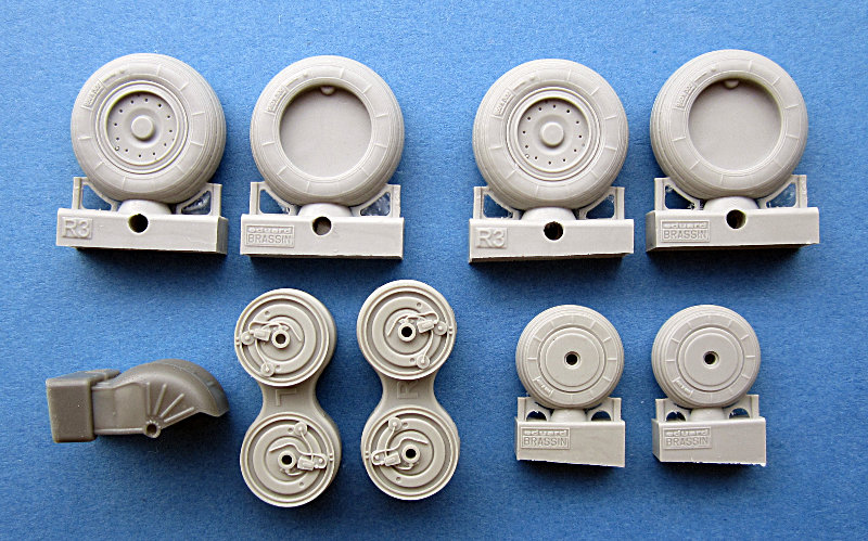 Die Räder sind am Anguss leicht abgeplattet und weisen feinste Details auf den Reifenflanken und ein Rillenprofil auf. Die inneren Felgen der Hauptfahrwerksräder liegen separat bei. Schön ist hier die Darstellung der Leitungen. Für die Bemalung der Felgen ist auch ein Satz Masken enthalten.