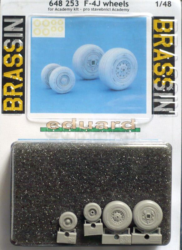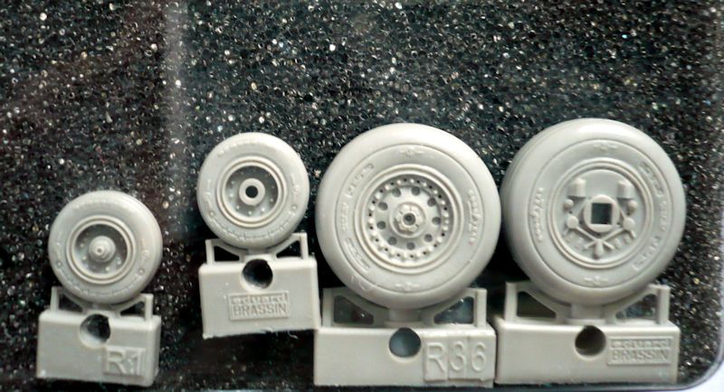 Für die Fans der Phantom F-4J hat Eduard Brassin ein Räderset herausgebracht. Die Räder, bekannt aus dem ebenfalls kürzlich erschienenen Eduard Limited Editionsbausatz "Rockin Rhino", bestehen aus vier Resinteilen und Maskierfolie zum sauberen lackieren mit der Airbrush. Die Teile bestechen durch einen erstklassigen und fehlerfreien Guss. Die Detaillierung verdient ebenso die Note sehr gut.