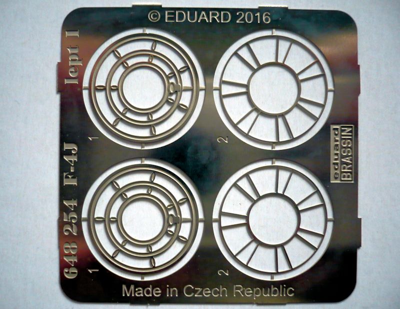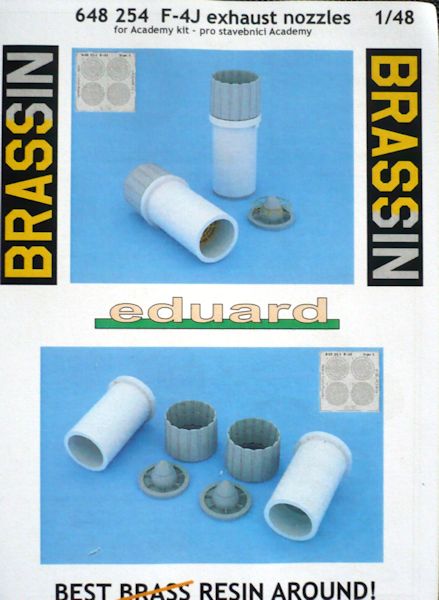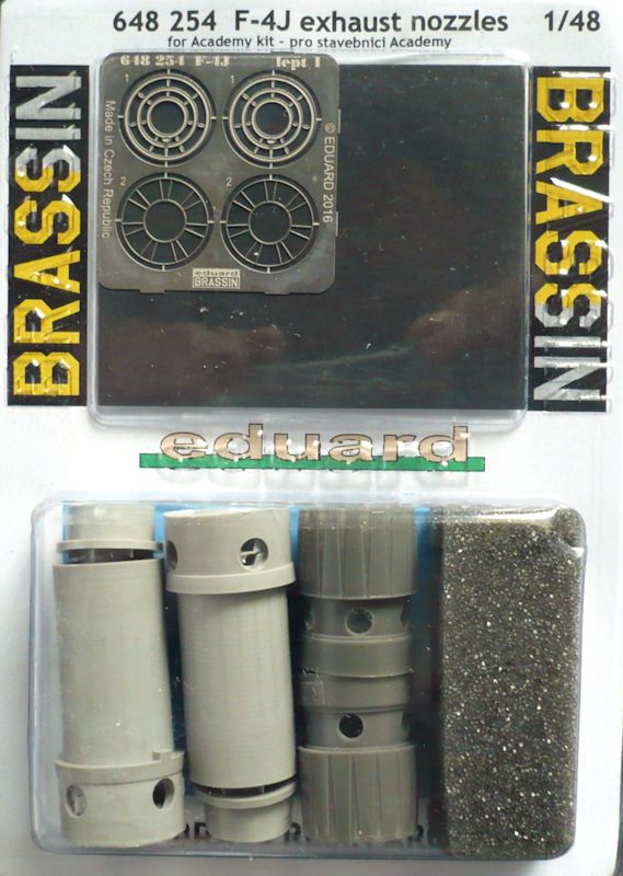 Zur weiteren Aufwertung der F-4J Phantom hat Eduard Brassin Triebwerke auf den Markt gebracht. Auch diese sind bekannt aus dem Eduard Limited Editionsbausatz "Rockin Rhino". Der Bausatz besteht aus 6 Resinteilen und einem Bogen Fotoätzteile. Die Resinteile glänzen auch hier durch einen erstklassigen und fehlerfreien Guss. Die Detaillierung verdient auch hier die Note sehr gut.