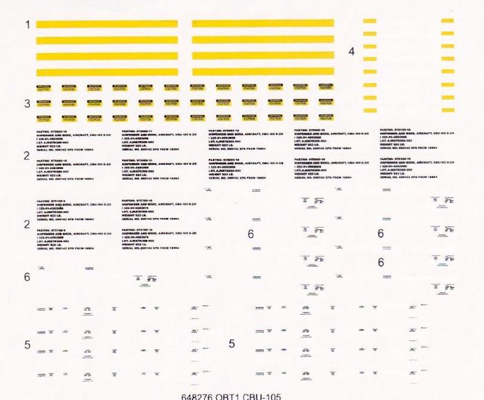 Vorbild: Bei der CBU-105 handelt es sich eigentlich um eine CBU-97. In Verbindung mit dem Wind Corrected Munitions Dispenser trägt sie die Bezeichnung CBU-105. Diese Streubombe hat ein Gewicht von 450 kg. Hergestellt wird sie von der US Firma Textron Defense System. Sie wird zur Bekämpfung von Fahrzeugen und Panzern eingesetzt. Als Submunition enthält sie 10 BLU-108. An diesen sind vier eishockeypuckförmige Projektile mit der Bezeichnung Skeets angebracht, die falls sie ein Ziel ausgemacht haben, einen Penetrator auf dessen Motor abfeuern und ihn zerstören. Die 40 Skeets können mit ihren Infrarot - und Lasersensoren eine Fläche von 450 m x 150 m abtasten und dann per Abgleich die richtigen Ziele angreifen.