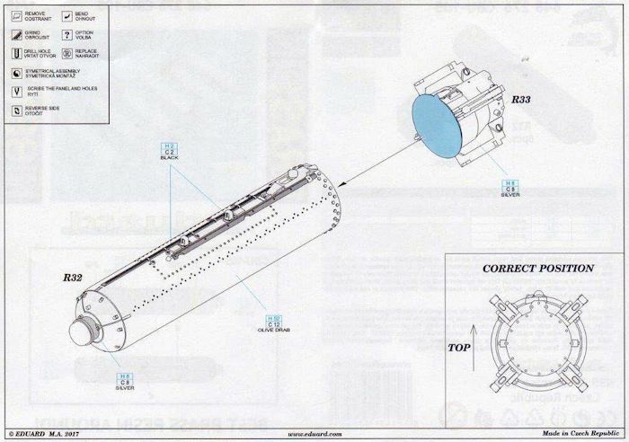 Anleitung: Ein reichhaltiger Decalbogen rundet den positiven Eindruck ab. Eine kurze Bauanleitung zeigt die korrekte Anbringung der hinteren Stabilisierungsteile. Auch Lackierungshinweise fehlen nicht.