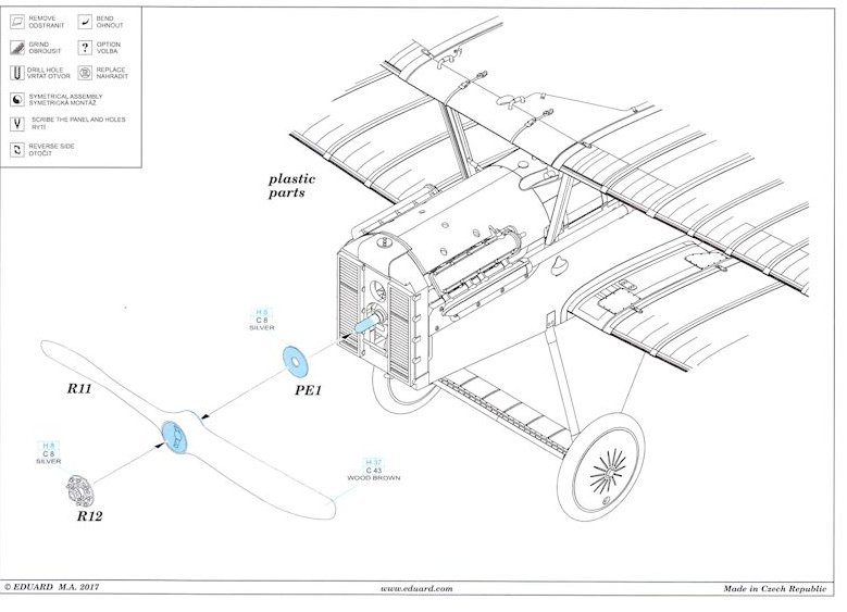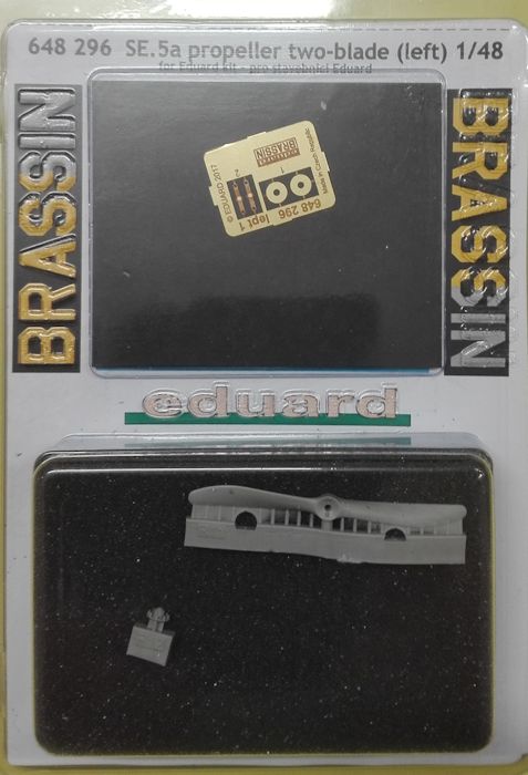 Speziell für die neue SE.5a bietet Eduard als Resin/Ätzteil einen linksdrehenden, zweiblättrigen Propeller an. Hiermit kann man den im Bausatz vorgesehenen Propeller durch einen deutlich detailierteren ersetzen.