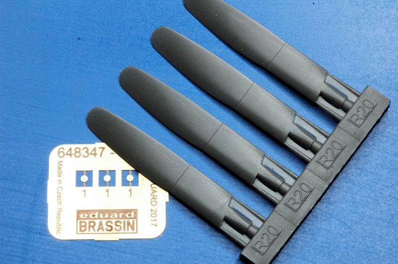 Wie die Räder sind Propeller immer wieder eine Schwachstelle in Spritzgussbausätzen. Diese Propellerblätter sind sehr fein und die Propellerhaube ist zweiteilig ausgeführt. Beim Abtrennen des vorderen Haubenteils ist erhebliche Vorsicht geboten um ärgerliche Nachbesserungen zu vermeiden. Außerdem ist eine Montagehilfe vorhanden.