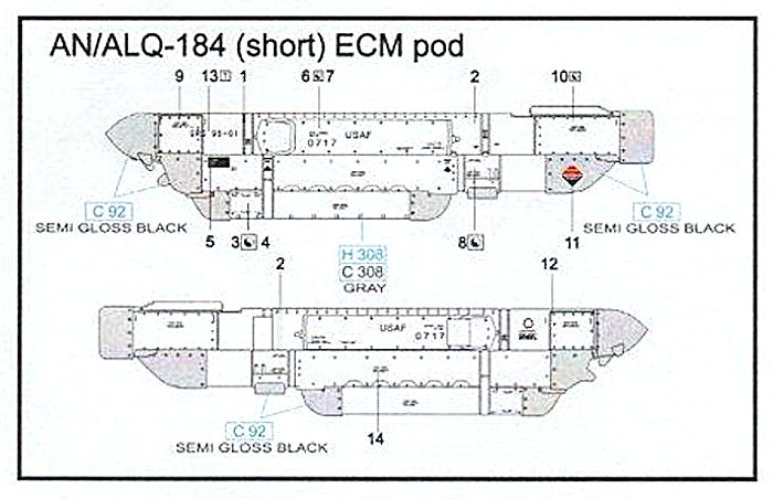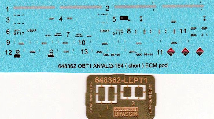 Für moderne Kampfflugzeuge der U.S Luftwaffe hat eduard Brassin den elektronischen Störbehälter AN/ALQ-184 in der kurzen Version herausgebracht. Mit ihm kann das gegnerische Radar getäuscht und Gegenmaßnahmen eingeleitet werden.
