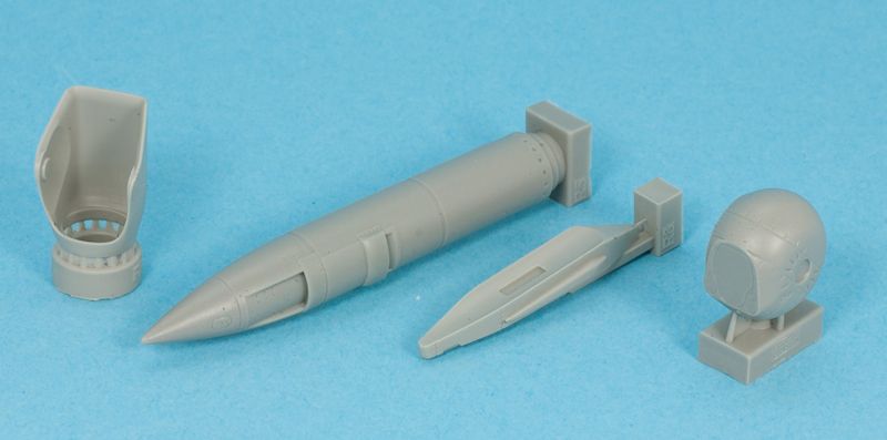Das Set enthält vier Resinteile, einen Abziehbilderbogen und eine Anleitung. Die Teile repräsentieren den eigentlichen Behälter, den Sensorkopf, die Sensorkopfabdeckung und den Pylon. Sie sind hervorragend mit feinen Details und ohne Grate gegossen.