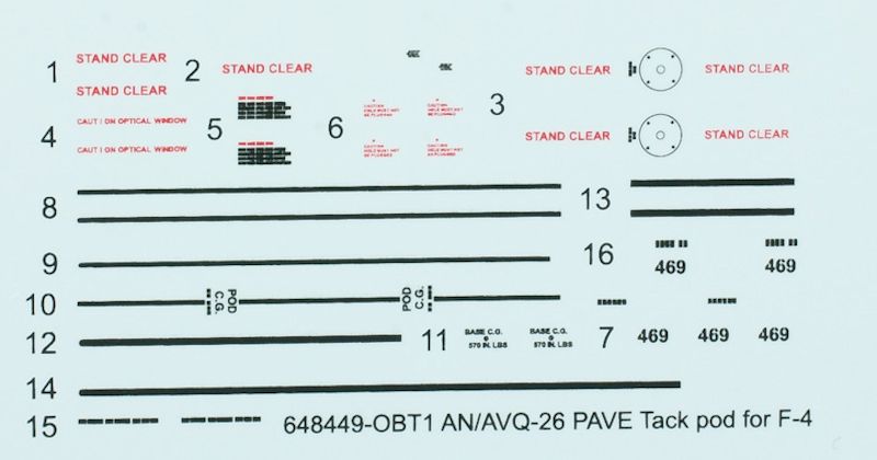 Vorbild: Der AN/AVQ-26 PAVE Tack Pod war ein elektro-optischer Zielbeleuchtungsbehälter der U.S. Air Force, der mittels Laser und FLIR Ziele für die Präzisionsbombardierung beobachten und markieren konnte. Er wurde seit den späten 70er entwickelt und 1982 in Dienst gestellt. Getragen werden konnte er von der F-4 und der F-111. Zum ersten Mal eingesetzt wurde der Pod 1986, richtig gefragt war er aber im Golfkrieg 1991, wo mit ihm stationäre und bewegliche Ziele bekämpft wurden. Der Behälter war groß und schwer (629 kg) und erzeugte beachtlichen Luftwiderstand, weswegen er von den Besatzungen "Pave Drag" genannt wurde.
