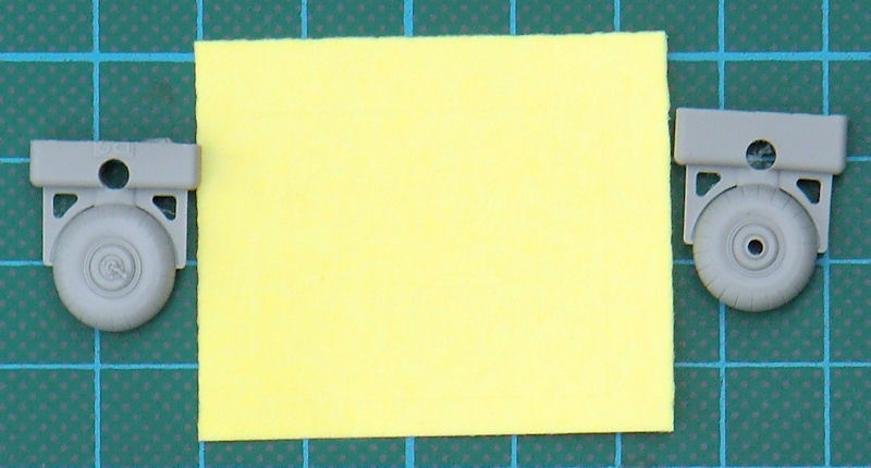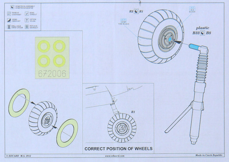 Mithilfe der gelben Masken kann man die Räder leichter lackieren. Farbhinweise findet man nicht im Set. Allerdings dürften Experten, die den eduard-Bausatz noch supern wollen, hier keine Probleme haben.
