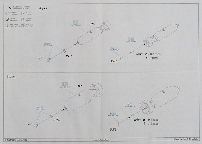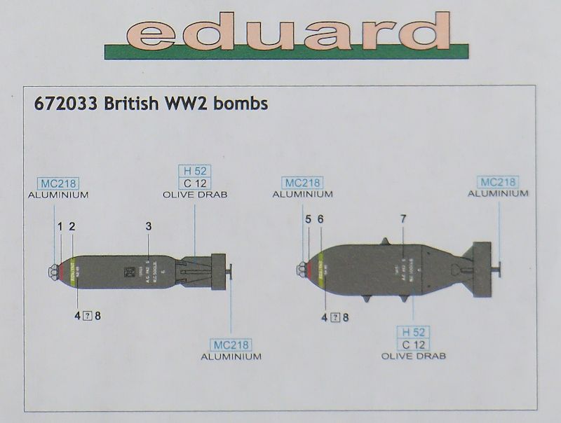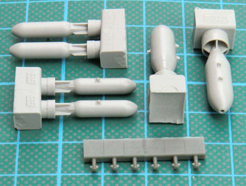 Fazit: Ein gut gemachtes BRASSIN-Set von britischen Bomben. Es erspart dem Modellbauer eine Menge Schleiferei an den meist mehrfach geteilten Bausatzbomben. Empfehlenswert.