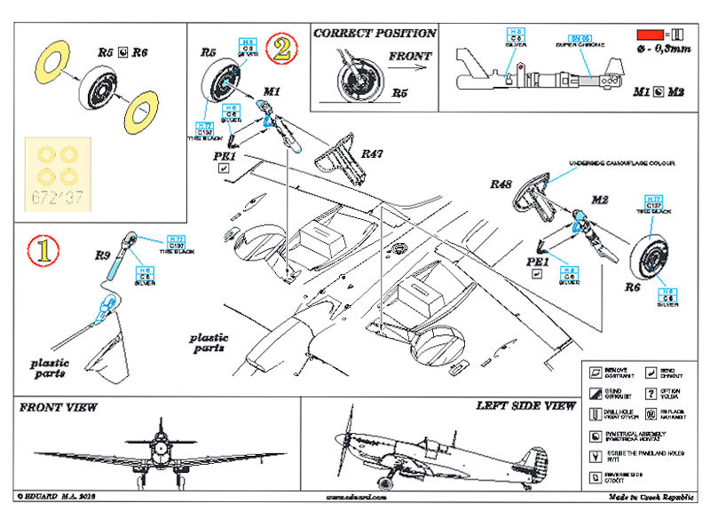 Fazit: Ein sinnvolles Detailset für alle, die den Bausatz der Supermarine Spitfire Mk. IX von eduard in 1/72 noch ein wenig supern wollen. Mir gefällt die Kombination des Räder- mit dem Fahrwerksbeinset am Besten.