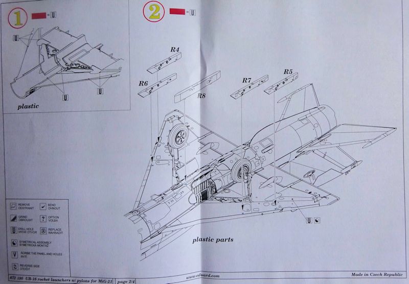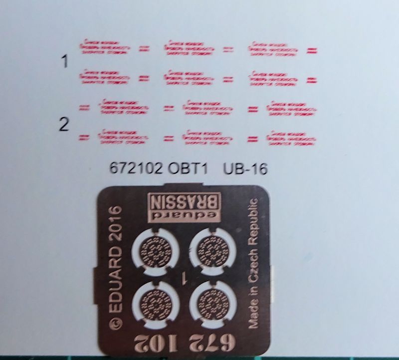 Hier liefert Eduard die je vier UB-16-Raketenbehälter zuzüglich der Träger. Den Rumpfträger für den Zusatzbehälter gibt es als Zugabe. Für die Detailierung gibt es Ätzteile. Ein kleiner Abziehbilderbogen vervollständigt das Set.