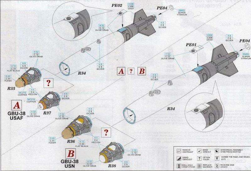 In der Anleitung wird auch mit Farbangaben auf die Lackierung der JDAM Bombe eingegangen.