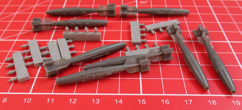 Die Angüsse sind sehr gut gewählt und die Bomben können jeweils mit vier verschiedenen Gefechtsköpfen ausgerüstet werden. Hier muss man sein Vorbild recherchieren. Die gelben Markierungen sollen mit Hilfe eines Decals dargestellt werden. Eine kleine Bemalungsanleitung ergänzt die Bauanleitung.