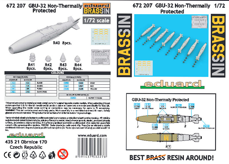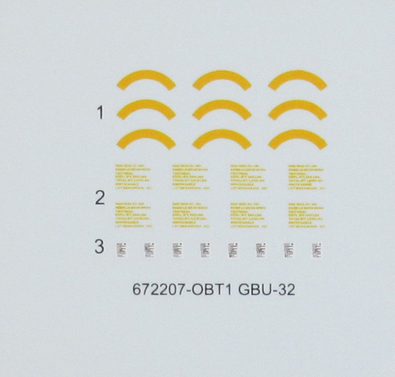 Fazit: Hiermit liefert eduard ein sehr gelungenes Set mit acht lenkbaren GBU-32 in 1/72. Gedacht sind diese für den fortgeschrittenen Modellbauer und für den sehr zu empfehlen.