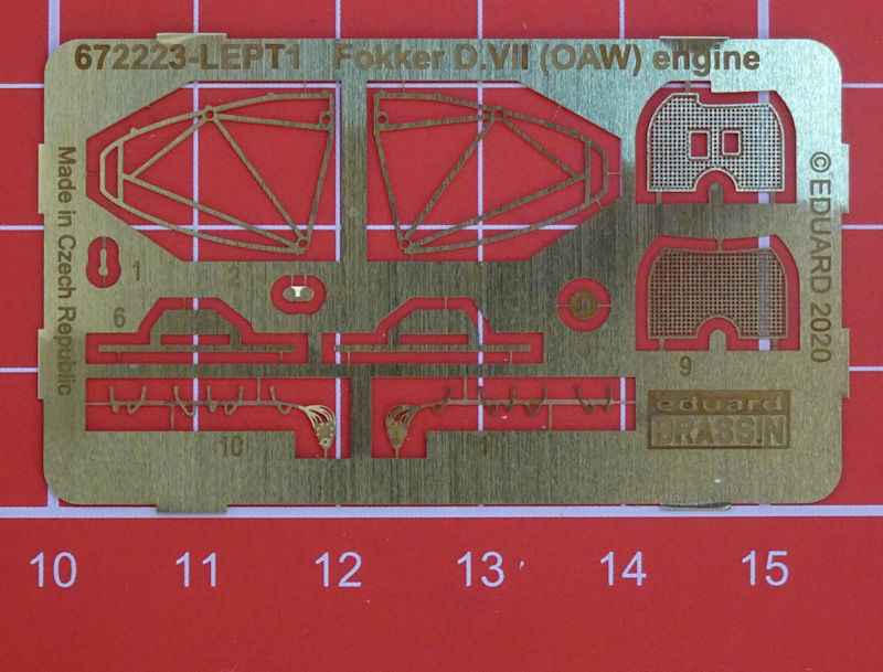 Für die verschiedenen hauseigenen Fokker D.VII(OAW)-Bausätze hat eduard ein Motordetailset herausgebracht. Es enthält elf Resinteile, ein Fotoätzeilbogen und die mehrseitige Bauanleitung.