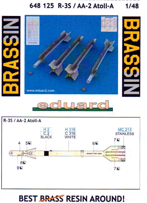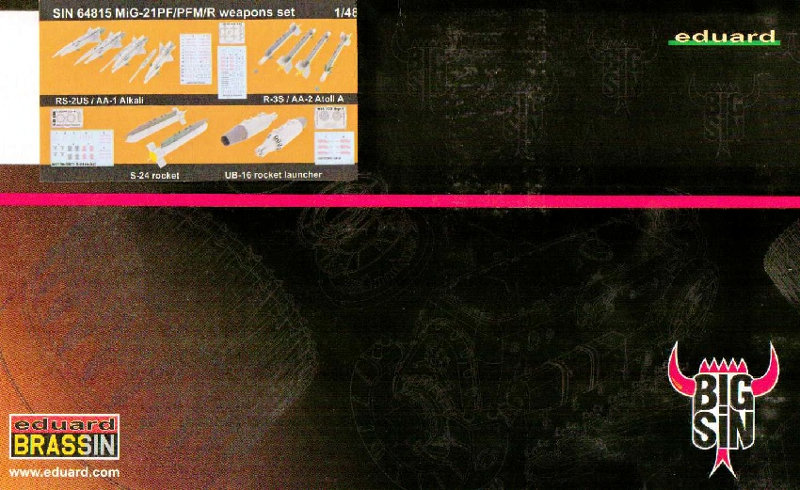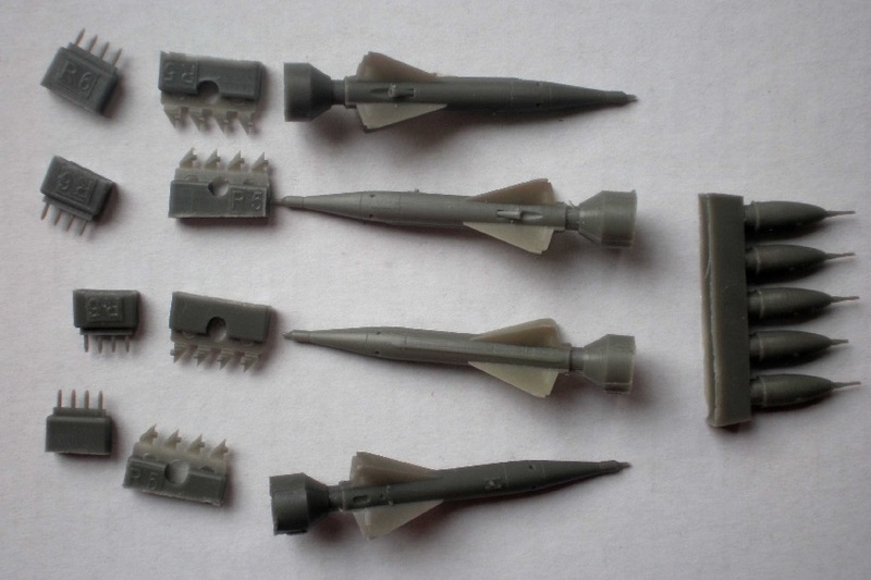 Parallel zu seiner Dreierkombination "Stríbrné šípy" erscheinen die dazugehörigen Waffen als Resinausgabe. Dieses BIGSIN beinhaltet die Einzelausgaben der RS-2US (Edu 648040), R-3S (648125), S-24 (648136) und UB-16 (648173). Der Guss bei allen Teilen ist sehr gut.