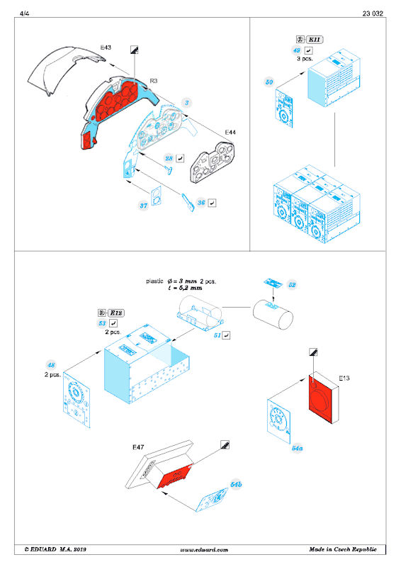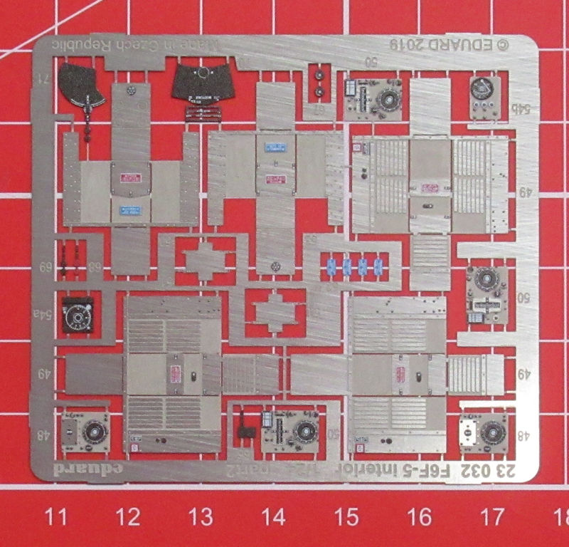 Für den gelungenen Bausatz der Grumman F6F-5 Hellcat in 1/24 von Airfix hat eduard ein Fotoätzteilset für das Innenleben herausgebracht. Es enthält drei Platinen und die vierseitige Bauanleitung. Eduard liefert hier wunderschöne Details für das Innere des Bausatzes. So gibt es einen neuen Sitz, Seitenruderpedale, weiterhin weitere Kleinteile fürs Cockpit.
