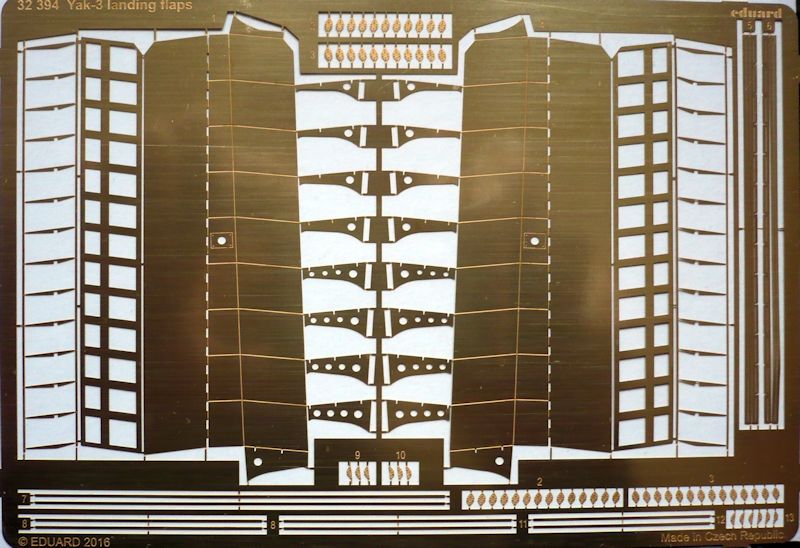 Das Zubehörsätzepaket wird mit verfeinerten Landeklappen vervollständigt. Hier bedarf es schon guter Nerven und eine ruhigen Hand, diese Elemente passgenau in die Tragflächen einzubauen. Der Zubehörsatz besteht aus einem Ätzteilbogen mit der linken und rechten Landeklappe.