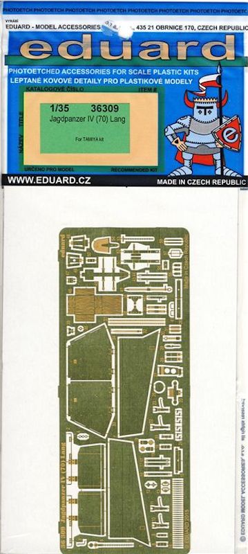 Für das neue TAMIYA Modell Jagdpanzer IV/70 (V) Lang, kommen von EDUARD zwei Update-Set heraus. Wie gewohnt beinhaltet dieser neue Ätzteilsatz nur eine relativ geringe Anzahl von Teilen, so können sich jetzt auch Modellbauer mit weniger Zeit an dieser Neuheit erfreuen.