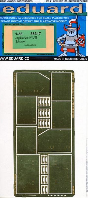 Für den Jagdpanzer IV L/48 July 1944 Production w/Zimmerit von Dragon bringt EDUARD ein Update-Set heraus. Wie gewohnt beinhaltet der Ätzteilsatz nur eine relativ geringe Anzahl von Teilen, so können sich jetzt auch Modellbauer mit weniger Zeit an dieser Neuheit versuchen.