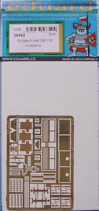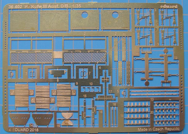 Eduard hat für das überarbeitete Modell des Panzer III Ausf. B von Miniart jetzt einen kleinen Zurüstsatz oder halt Verbesserungssatz herausgebracht. Das Set besteht aus einer kleinen Platine. Wie immer kann man viele Bauteile mit Ätzteilen sinnvoll aufwerten oder austauschen. Die meisten Teile sind gut und leicht zu verarbeiten.