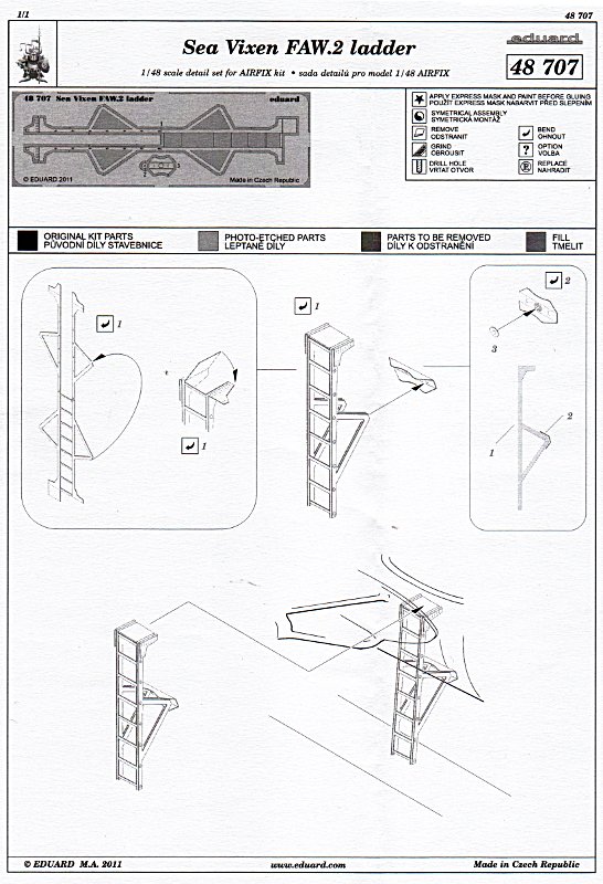 Dieses Detailset enthält eine Einstigesleiter für die Sea Vixen und bietet sich förmlich als Ergänzung für ein Modell mit geöffnetem Cockpit an. Die Gestaltung ist sehr einfach. Leider kann ich nicht einschätzen wie gut der Satz das Vorbild wieder gibt.