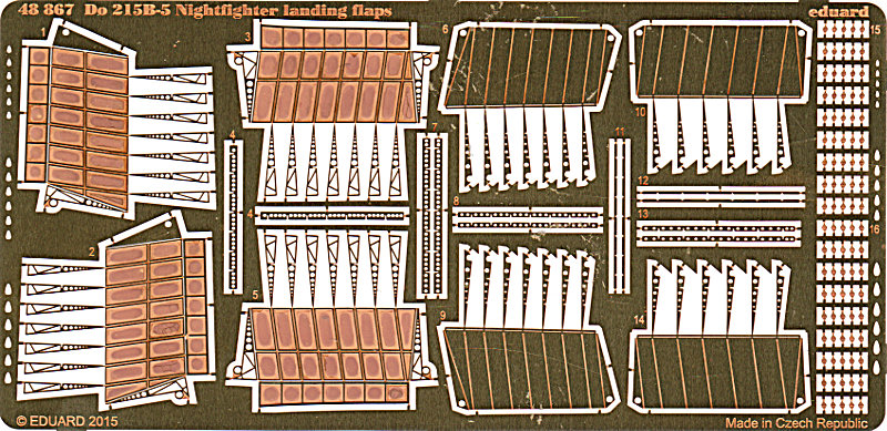 Mein erster Gedanke war, dass der bekannte Satz 48819 für die Do 215B wieder aufgelegt wurde. Aber beim Blick auf das Teilelayout und die Bauanleitung fallen Veränderungen auf. Einerseits wurde der Aufbau vereinfacht und die "durchsichtige" Struktur der Rückwand zum Flügel hin geschlossen. Das bedeutet etwas weniger Faltvorgänge an den großen Teilen. Andererseits sind schließlich 52 mikroskopische "Punkte" auf die Landeklappenstruktur zu kleben. Immerhin sind 90 davon vorhanden, nichtsdestotz müssen davon erst mal zweiundfünfzig ohne Grat von den zwei Ansatzpunkten getrennt und sauber auf die Klappen geklebt werden. Dafür sollte man eine gute Portion "Beruhigungsmittel" vorrätig haben... Auch hier wieder der Verweis auf die Bauanleitung für einen genaueren Blick.