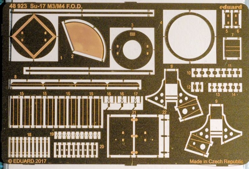 FOD steht für "Foreign Object Damage". Das können bei anderen Flugzeugen auch Schutzgitter gegen angesaugten Dreck oder kleine Steine sein. Bei der Su-17 (und anderen Flugzeugen) geht es wohl eher um die Abweisung von Vögeln, die Brutplätze suchen oder zu neugierige Kleinsäuger wie Marder oder Dachse. Nett sind die Radblöcke.